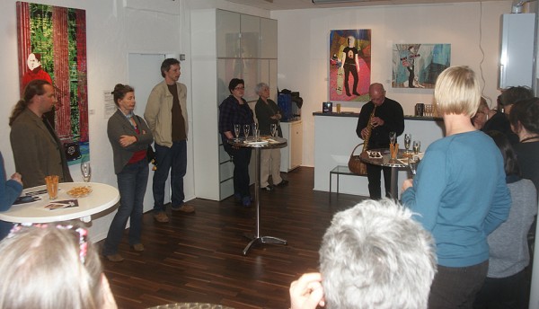 Begleitet wurde die Vernissage von Dietrich Rauschtenberger mit einer musikalischen Collage auf dem Saxophon. Er ist einem größeren Publikum seit langem besonders als Schlagzeuger bekannt und in den letzten Jahren auch als Autor von Erzählungen, eines Romans und eines Hörspiels hervorgetreten.